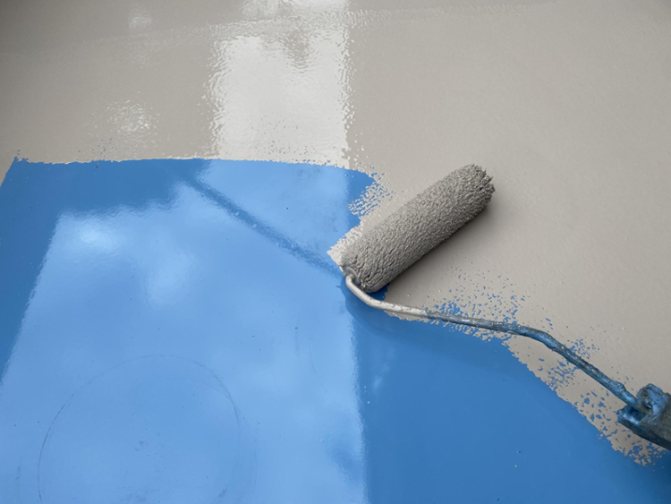 防水層を紫外線や摩耗から保護するために、トップコート(仕上げ材)を塗布します。それにより、防水層の耐久性を高めます。